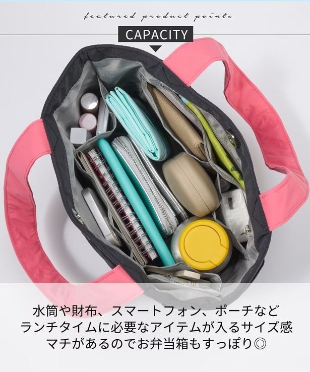 小ぶりなトートはお弁当箱入れとしてもメインバッグとしても優秀