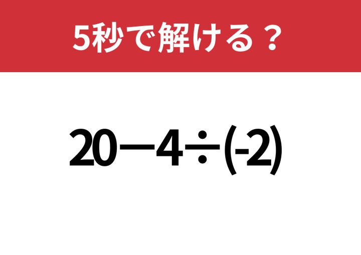 3. 盲点にハマる!?「20−4÷(-2)」5秒で解ける?