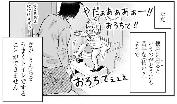 ――第30話はトイレトレーニング、いわゆる“トイトレ”のお話ですね。立った状態でおしっこはできたところからお話が始まっています。おしっこはすんなりできたのでしょうか?