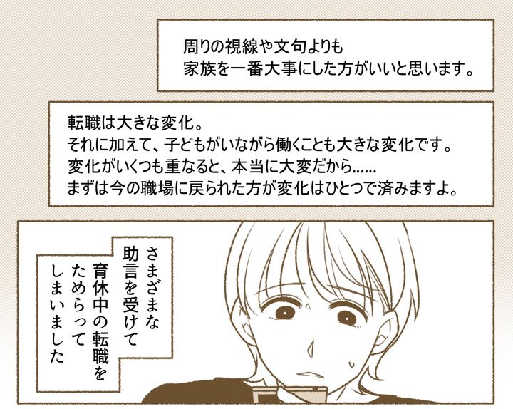 ママたちからアドバイスを受け、育休中の転職をためらってしまいました。