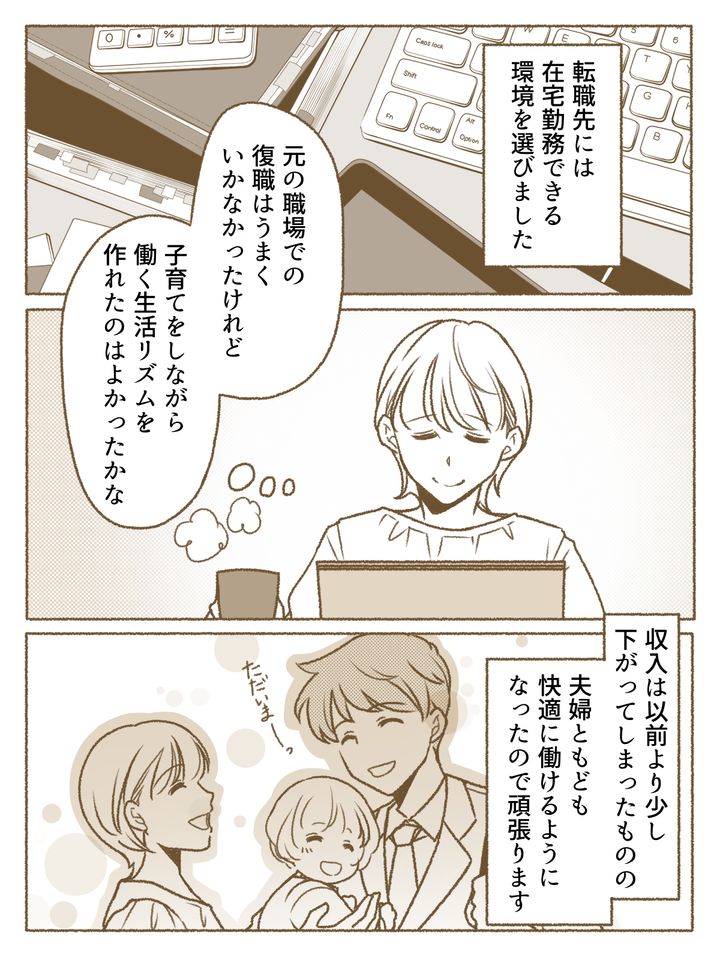 <職場復帰、ムリ~!>一度は復帰したものの、結局は転職…。夫婦の絆、深まった!?【まんが】
