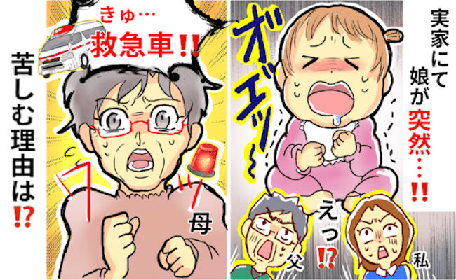 そのとき、娘が突然「オ゛エッ」と何度もむせ始めました。何事かと慌てる私。娘は今まで見たことがないむせ方をして、とても苦しそうでした。