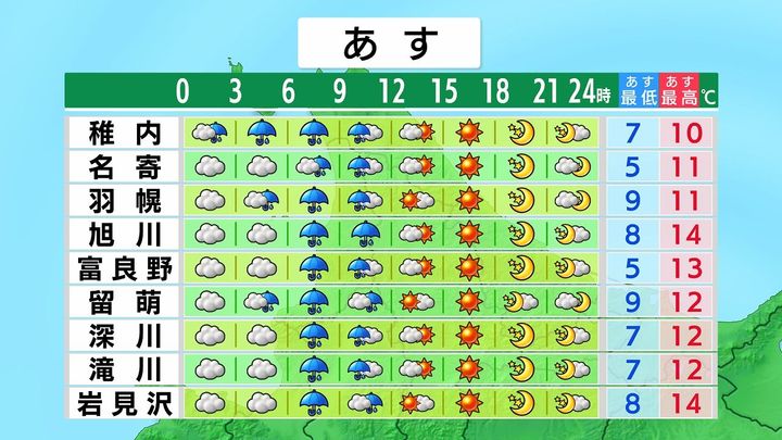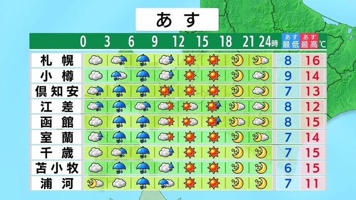 ・あすの札幌の朝昼晩の天気