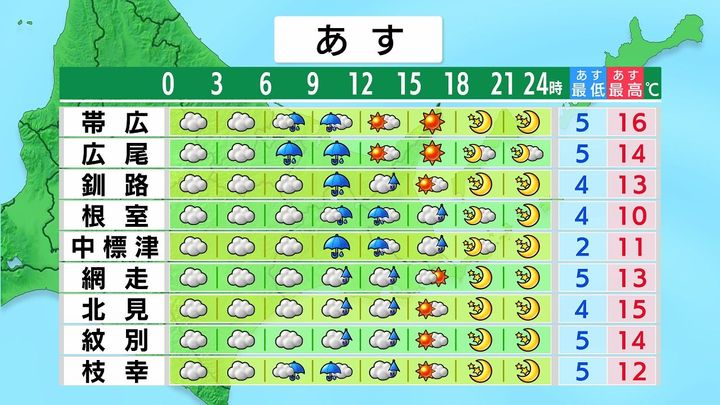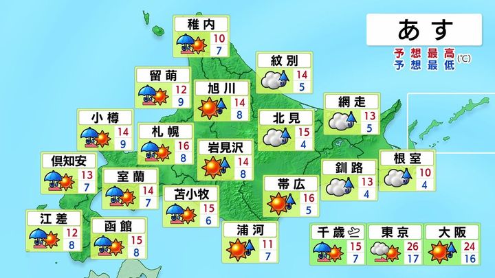・あすの北海道の天気と気温