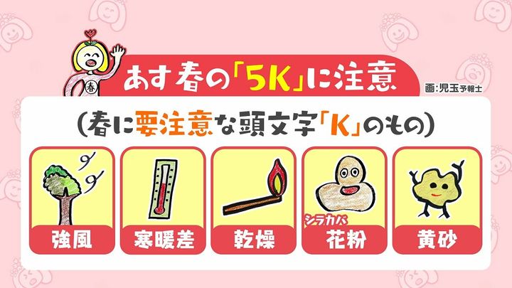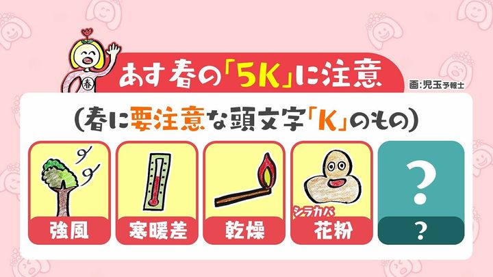 あす21日(火)は春の「5K」に注意が必要です。(特に春に注意が必要な頭文字「K」のもの)