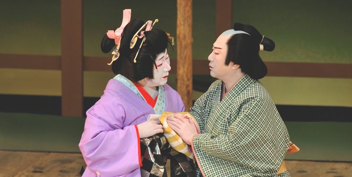 実際の心中事件を題材に、近松門左衛門が描いた傑作『曽根崎心中』。長く上演が途絶えていましたが、歌舞伎では1953年に宇野信夫の脚色・演出、二代目中村鴈治郎の徳兵衛、二代目中村扇雀(のちの人間国宝・四代目坂田藤十郎)のお初によって復活上演されました。