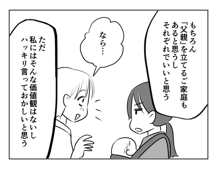 3. 【父は偉い!タオパンパ】私に男性優位の価値観はナイ!夫に突きつけた二択#4コマ母道場