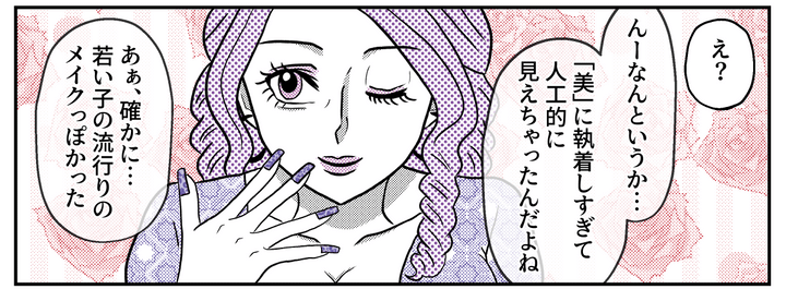 ルナからは美を熱心に追求している様子が伝わりました。ただミサトに言わせれば、ルナはちょっと「のめり込みすぎている」そうです。若い子に流行っているメイクも、「若く見える」んじゃなくて、「若作り」に感じてしまうのだとか……。