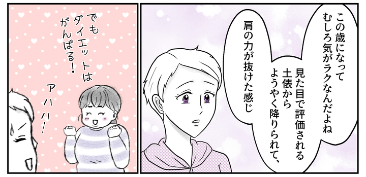 見た目で評価されなくなり、ありのままでいられる今が気楽なのだそうです。