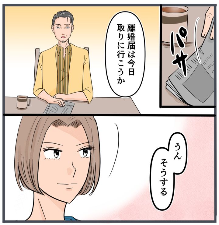 ある日の朝、マミの父親が、「離婚届は今日取りに行こうか」と口を開きました。マミは「うん、そうする」とだけ答えました。
