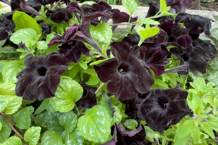 ペチュニアはかつてタネから育てるタイプが主流でしたが、さし木でふやす‛サフィニア’シリーズが登場。近年は雨に強くて梅雨を乗り越え、横に広がりながら長く咲き続けます。茎が伸びすぎたら切り戻すことがポイント! シックなブラックやバラエティーに富む花色、模様が楽しめます。
