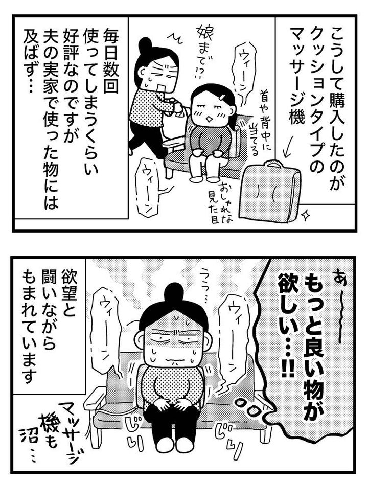 しかし、夫の実家で使ったマッサージ機の気持ち良さには及ばず、「あれと同じ物が欲しい……」とよく思ってしまいます。
