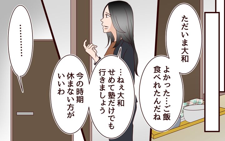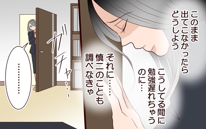 夫が会社で寝泊まりしていることを気にはしつつも、毎日、息子の受験のためにやらなければいけないことだらけで気にしないようにしていました。それなのにこんな重大な時に連絡がつかないなんて…! 家の中で夫の居場所の手掛かりになるものを探そうとして、初めて夫の荷物が持ち出されていることに気がついたのです。子どもが大変な時に、父親である夫がいったいどこで何をしているのか…? まさか…!? そんな想いが頭から離れませんでした。