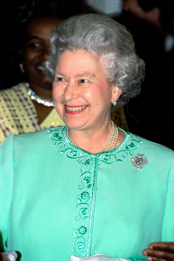 もともとは1911年にメアリー王妃のためにデザインされたこのブローチは、およそ19カラットのハート形のダイヤモンドを使用しているそう。写真は、1989年3月9日のもの。