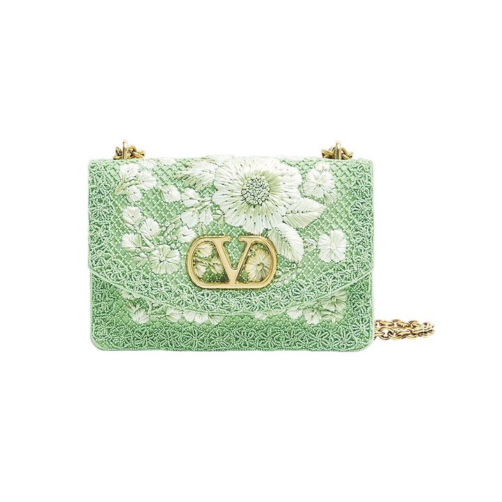 【ヴァレンティノ ガラヴァーニ】ライトグリーンがみずみずしい、フローラルな刺しゅうとビーズのバッグ
