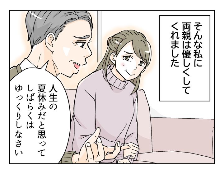 こうしてクルミさんはご両親に甘えさせてもらうことに。家事と子どもたちのフォローはお母さんに任せ、生活費もご両親がすべて負担してくれることになりました。それにしてもなんて娘想いなご両親なのでしょう。いくつになっても子どもを思う親の愛情、本当にありがたいですね!