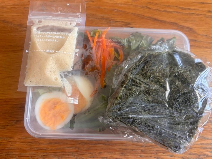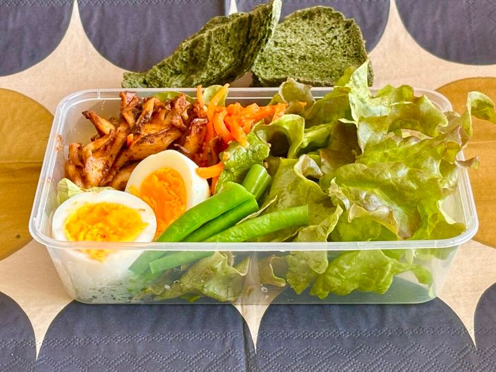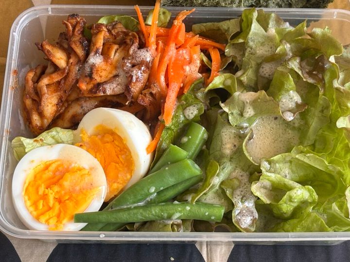 ゆで卵や、サラダチキン、きのこのソテーなど、食べ応えのあるものは必ず入れるようにしています。