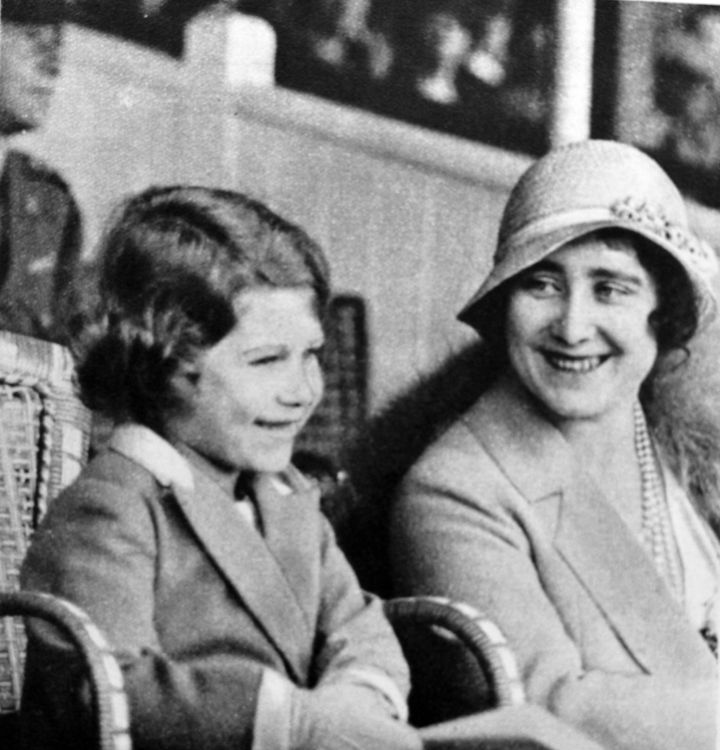 当時のヨーク公爵夫人である母の腕に抱かれた、生後間もないエリザベス王女。