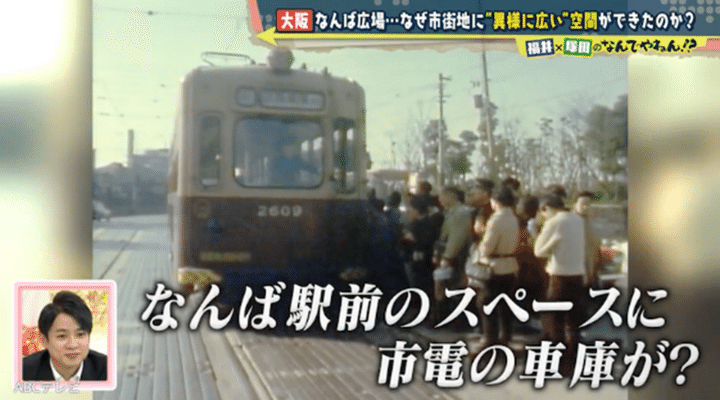 しかし、すぐそばに走る大阪の大動脈・御堂筋の脇にこの広場があることに着目した塚田は「バスの車庫とか、路面電車の車両が入りそうな……」と推理。