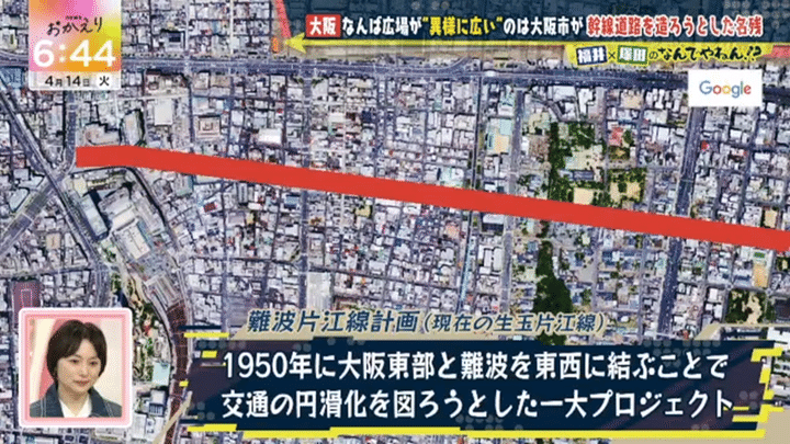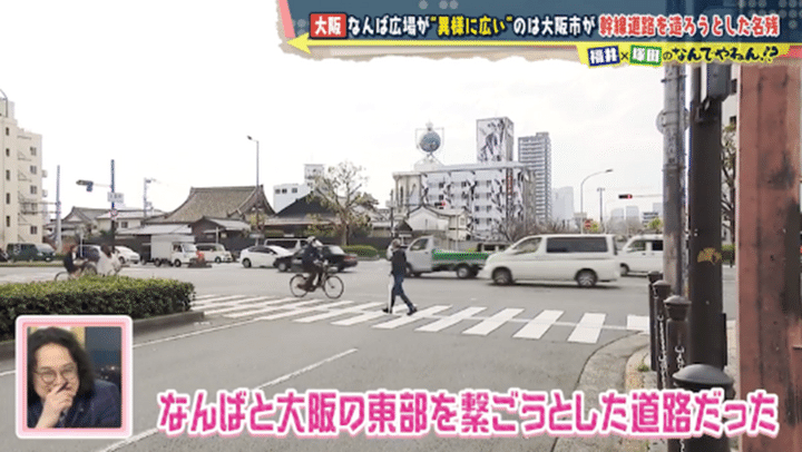 1950年、戦後復興のため大阪東部と難波を結ぶ新たな道路を造る一大プロジェクトが提案され、そのスタート地点があの「なんば広場」の場所だったのだという。しかし、黒門市場をはじめさまざまな商業施設が立ち並び、賑わい豊かな街となった難波において、各施設が立ち退くことは難しく、計画は頓挫してしまった。