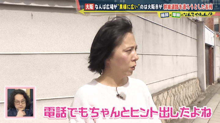 と珍回答。福井アナが「路面電車説」に軌道修正し、大阪の歴史に詳しい歴史探訪プランナー・森なおみさんに方向性を確認してみると———?残念ながら、広場のスペースと路面電車はまったく関係なし!