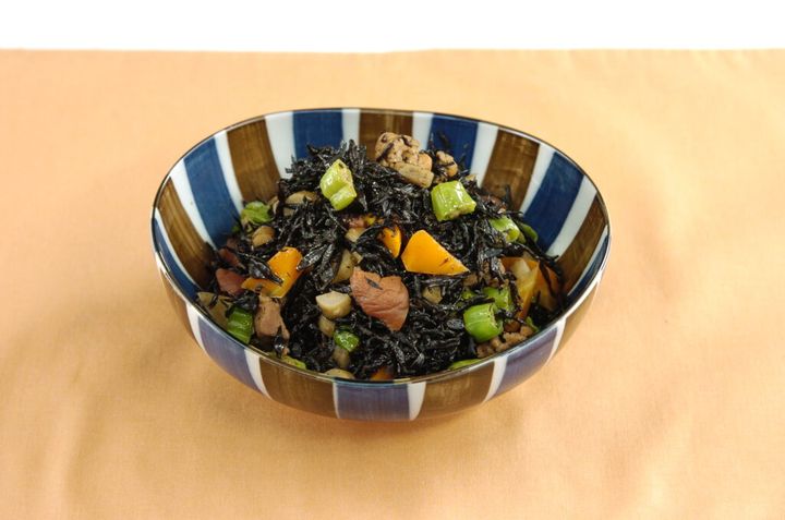 この日のテーマは「梅干しを使って」。梅の酸味が食欲をそそる具だくさんなひじき煮「五目梅ひじき」を辻調理師専門学校の長谷川晃先生から教わった。
