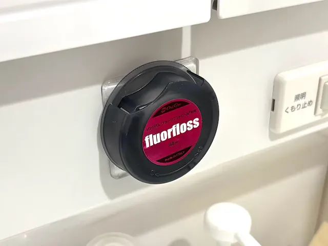 筆者は、洗面台周りの壁に耐震マットを貼り、デンタルフロスのケースやリップクリームなど、ごちゃつきがちな小物をすっきりと整理しましたよ。