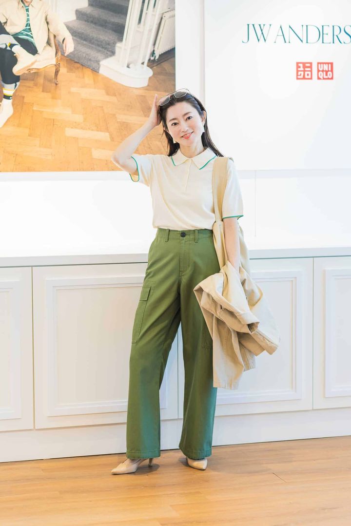 カーゴパンツ¥4,990 ポロセーター¥2,990 ジップアップブルゾン¥4,990(すべてユニクロ アンド ジェイ ダブリュー アンダーソン/ユニクロ) ※トップス、パンツはMサイズを着用 バッグ、靴(ともに私物)