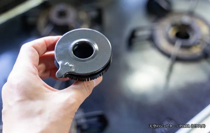 また、点火部の『バーナーキャップ』の目詰まりは燃焼効率を下げます。古い歯ブラシなどで汚れを落とし、水洗いした後はしっかり乾かして元に戻すなど、定期的な掃除が効果的です。