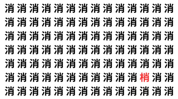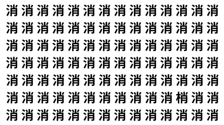 たくさんの「消」の中に、よく似た別の漢字が1文字だけ隠れています。
