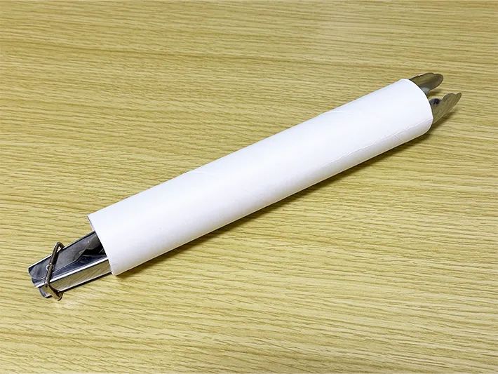 使い方はいたって簡単。トングを閉じて、キッチンペーパーの芯の中に差し込むだけです。