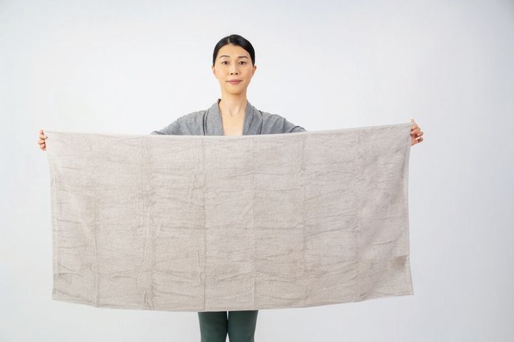 タオルは横幅130cmくらいある大判が結びやすくおすすめ。大判タオルがなければ、2つのタオルを固結びでつなげるか、結ぶのが難しければタオルを交差させて、ヘアゴムを使って留めても。