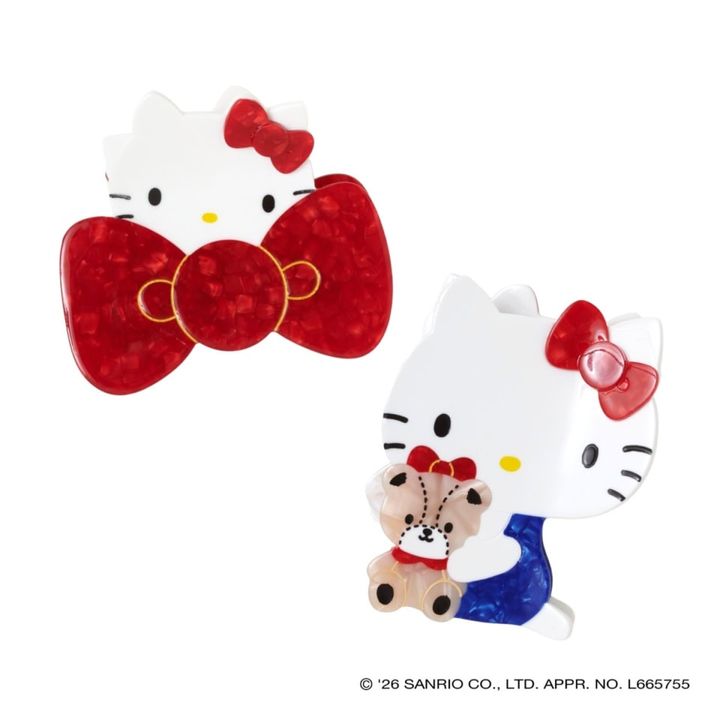 リボンから覗いた姿がなんともキュート。大きめサイズは髪をまとめるのはもちろんバッグに付けても可愛いんです。〈HELLO KITTY〉 バンスクリップ リボン/ ボディ 各¥2,970(コスメキッチン)※5月29日発売