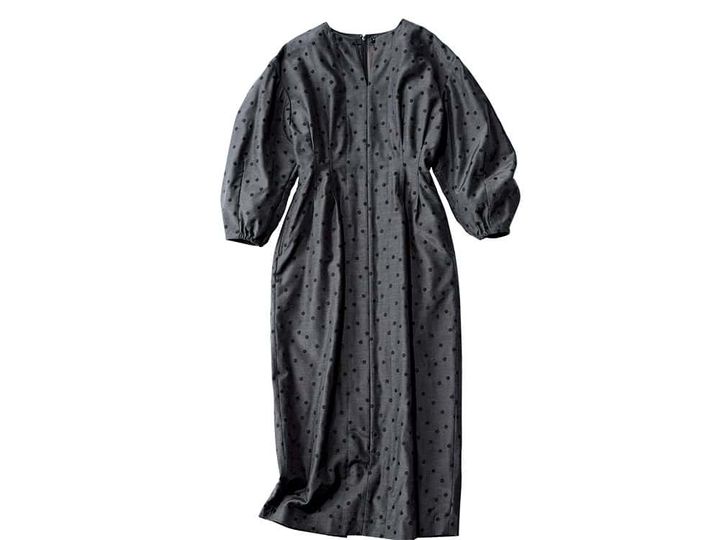着るだけで、理想のボディラインを作ってくれるワンピース。ふんわりした袖や膝下の丈など、着ている人も安心できる1枚。