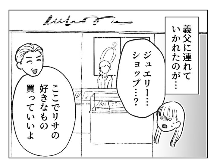 3. 【ノンデリ義父!】連れてこられたのは「ジュエリーショップ」!?ムリムリ~#4コマ母道場