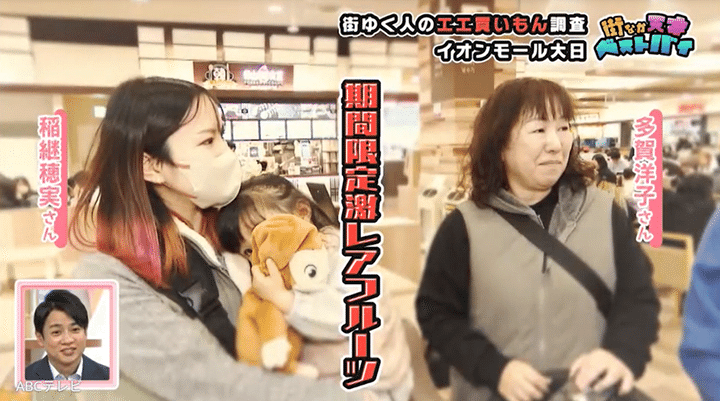 なお、イオンモール大日にいた人々のベストバイは、情報番組『newsおかえり』(ABCテレビ、毎週月曜~金曜午後3時40分より放送)内の「街なか天才ベストバイ」4月10日放送回で紹介されました。