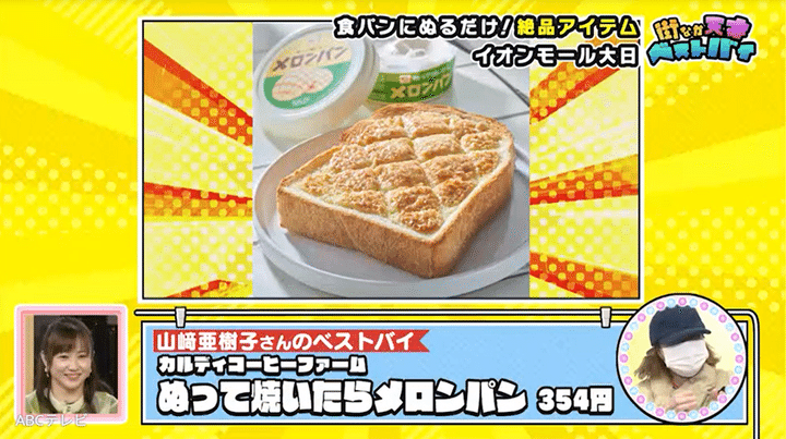 女性ダンサーの母親のベストバイは、コーヒーと輸入食品の専門店でお馴染み・カルディコーヒーファームの大人気商品・ぬって焼いたらメロンパン。その名の通り、ぬって焼くだけで普通のパンがメロンパン風に仕上がります。母親だけでなく、娘である女性ダンサーも大好きで、「もう3~4回くらい買っている」のだとか。年間100万個以上売れるというぬって焼いたらメロンパンはもちろん、同シリーズのカレーパン風商品も人気です。