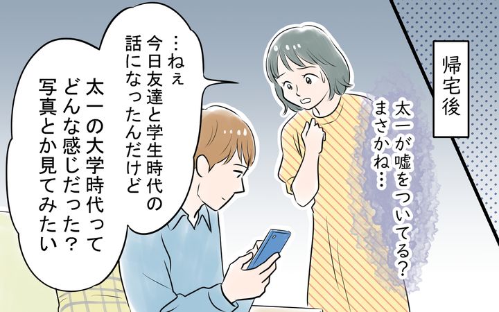 なかなか外出を許してくれない太一でしたが、私だってたまには気分転換が必要です。久しぶりに親友たちと楽しい時間を過ごすなか、夫についての思いがけない話を告げられました。ベストセラーを担当したと言っていた出版社に在籍していた形跡がなく、有名大学出身でもないというのです。どういうこと…? 太一の輝かしいプロフィールは、まさか全部ウソだったの…? 夫を信じたい私は、大学時代の写真を見たいと太一に言ってみたのですが…。