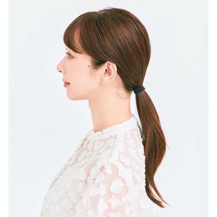 1.普通のひとつ結びだと、結び目の細さが目立ちます。