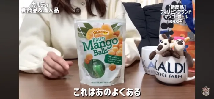 もともとカルディで販売しているドライマンゴーが、丸いひと口サイズになった新商品!