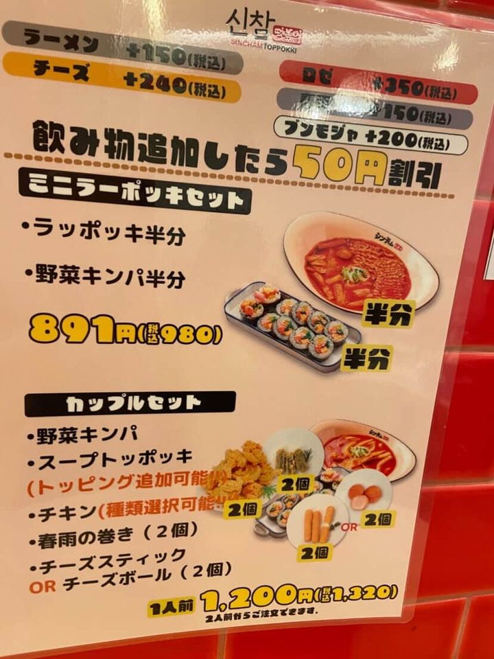 気になるメニューですが、チーズトッポギ・マーラートッポギ・ラッポッキ・キンパ・ヤンニョム・スノーチーズなどメニューやセットメニューの種類が豊富でしたよ。全品テイクアウトOKです。