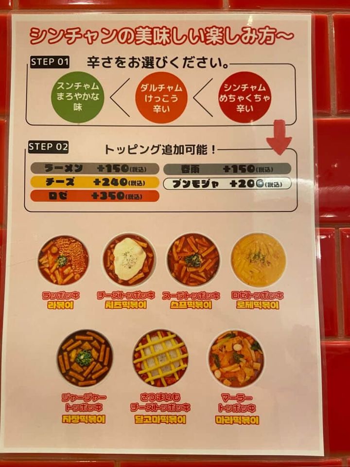 店員さんにおすすめをお聞きするとラッポッキとのことでした。今回私は、一番人気のある【ラッポッキ】をテイクアウト注文しました。辛さレベルが、スンチャム(初級)ダルチャム(中級)シンチャム(上級)から選ぶことができました。