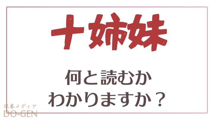 漢字の読み方としては「妹」の読みだけやや特殊。 「ジュウシマ〇」……最後は何が入るか、もうおわかりですね?