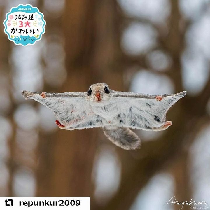 1枚目のにっこり微笑んでいるかのようなエゾモモンガのお写真には「鳴いてる!鳴いてる!(聞こえないけど)オスがメスに熱烈なアピール」というキャプションがありました。