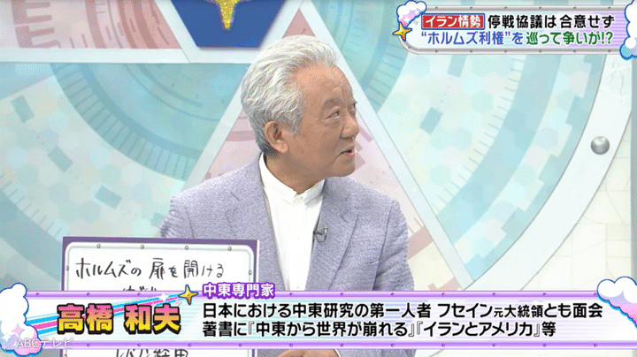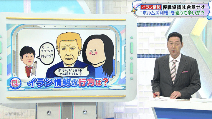 なお、アメリカ・イラン情勢における両国の思惑や、それによって漁夫の利を得る可能性のある中国については、4月18日に生放送された情報バラエティ番組『教えて!ニュースライブ 正義のミカタ』(ABCテレビ)で取り上げられた。