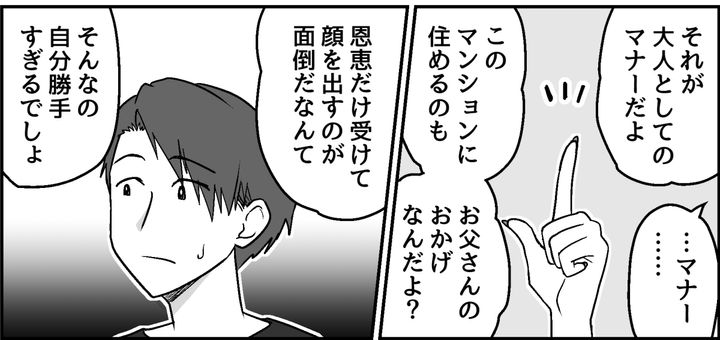これだけ恵まれた環境にいながら不満を漏らすなんて、甘えているだけに感じてしまいます。トオルはうちの両親にもっと誠意を見せるべきだと思ったのでした。