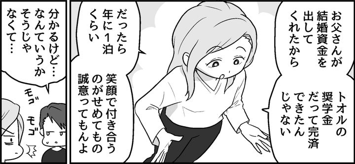 3. <援助は地獄…?>恩恵受けて「旅行はイヤ!」はマナー違反。誠意のない夫にガッカリ【まんが】