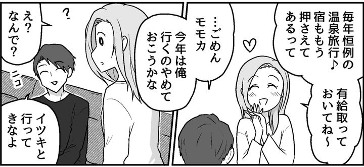 両親との温泉旅行は、1泊あたり数十万円の高級旅館……。なかなか泊まれない宿だし、行かないなんてありえません。けれどトオルは遠慮の言葉を口にしました。トオルの稼ぎじゃ考えられない贅沢だから、気を遣うのかもしれません。