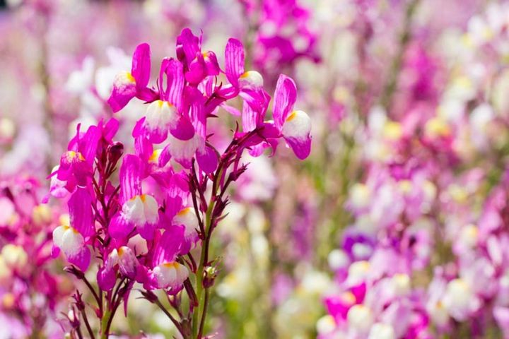 ヒメキンギョソウとも呼ばれる一年草と、高性の宿根リナリアがあります。春の花には少ない縦のラインの花穂が目立ち、風に揺れてやさしい雰囲気。ところが、茎が倒れてもわき芽が伸び出るほど強健です。チッ素過多になると倒れやすいため、一年草に追肥は施しません。