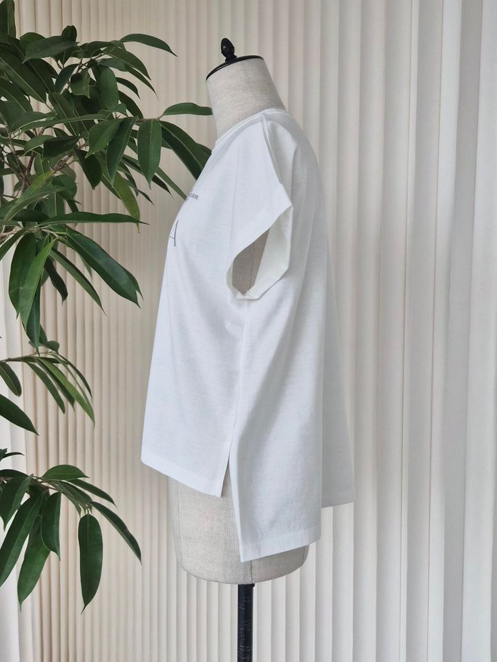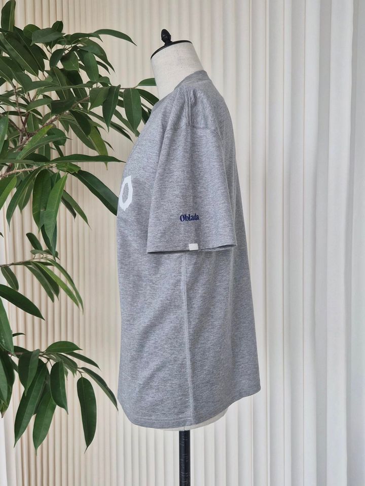 「程よく体にフィットするサイズ感なので、すっきりと着られてやぼったく見えず、シンプルなコーデでもサマになります。袖にプリントされたブルーの“Oblada”ロゴがさりげなく利いて、こなれた雰囲気を演出。テープを貼って作られたような胸プリントのデザインも、手が込んでいてキュンとしました♡」(エディターRISA)